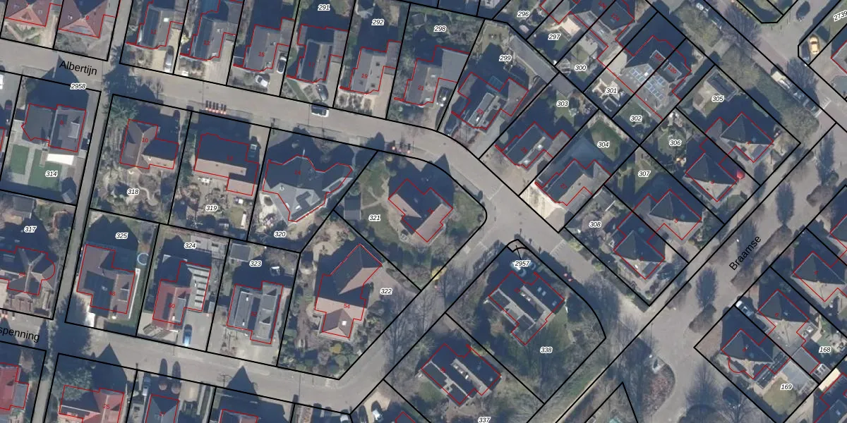 Het perceel waarop Albertijn 16 staat heeft een oppervlakte van 676 m². Dit is een groot perceel. De perceeloppervlakte wordt geregistreerd door het Kadaster. Gedetailleerde informatie over de maten van dit perceel kunt u vinden in het rapport Kadastrale kaart met maatvoering van Albertijn 16.