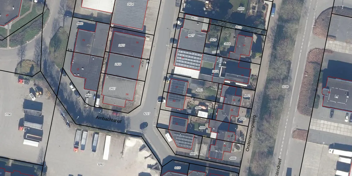 Gebruik de zoekbalk of klik op een perceel voor informatie over de adressen binnen dit perceel.