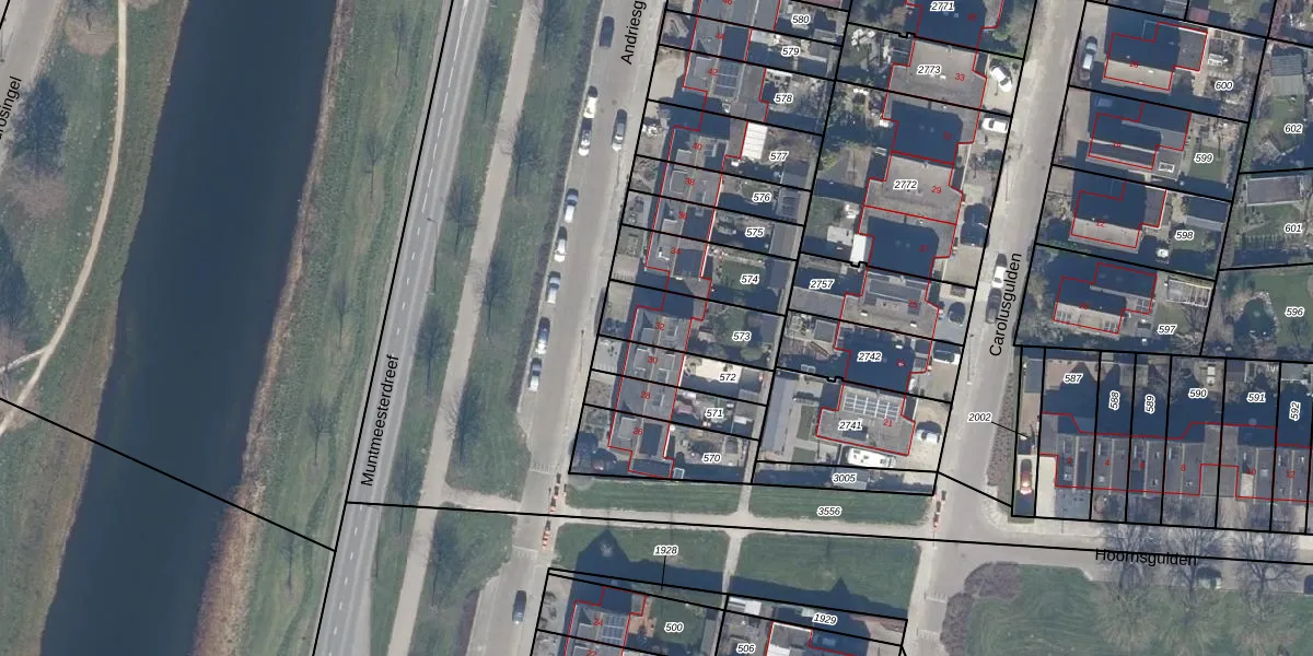 Gebruik de zoekbalk of klik op een perceel voor informatie over de adressen binnen dit perceel.