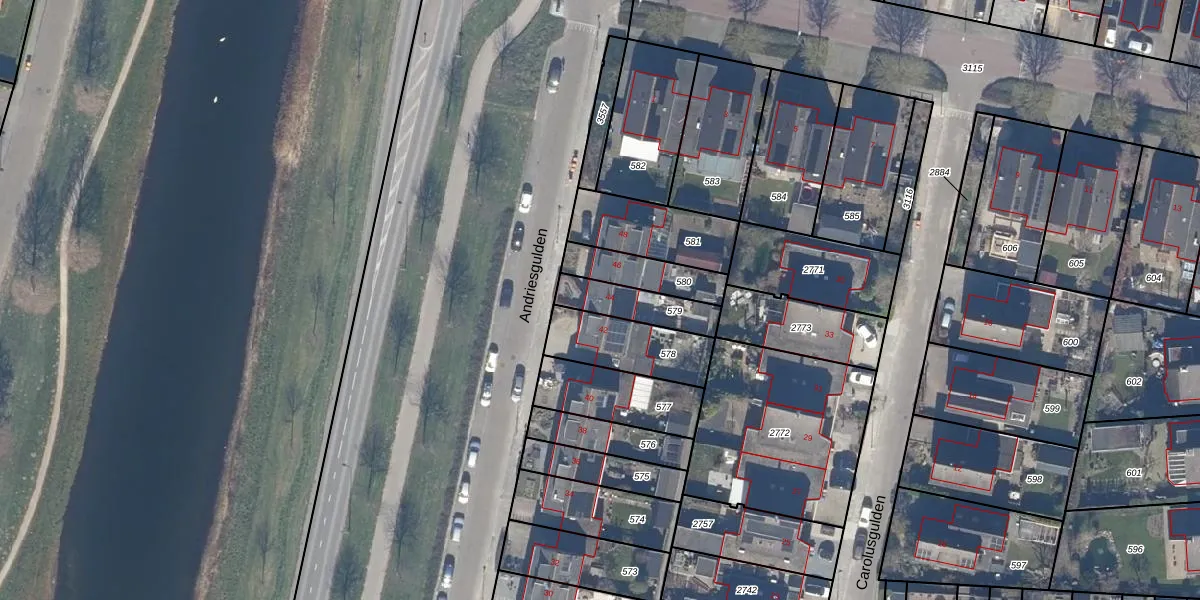 Gebruik de zoekbalk of klik op een perceel voor informatie over de adressen binnen dit perceel.