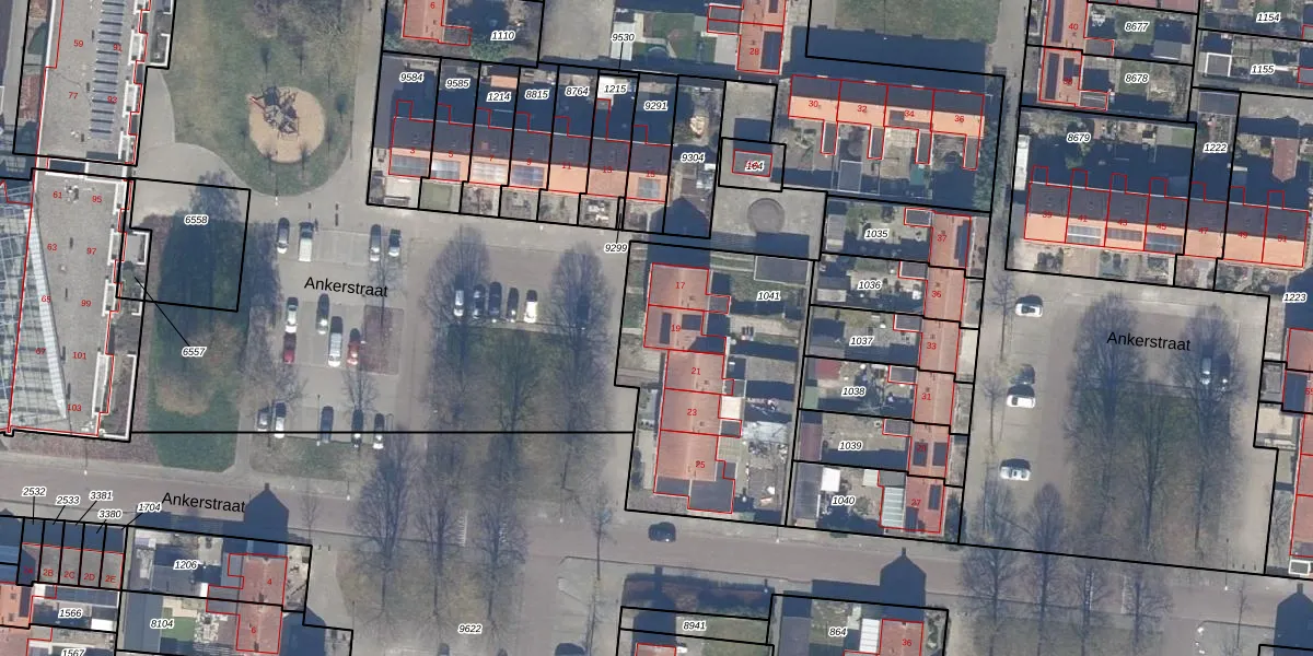 Het perceel waarop Ankerstraat 19 staat heeft een oppervlakte van 1071 m². Dit is een zeer groot perceel. De perceeloppervlakte wordt geregistreerd door het Kadaster. Gedetailleerde informatie over de maten van dit perceel kunt u vinden in het rapport Kadastrale kaart met maatvoering van Ankerstraat 19.