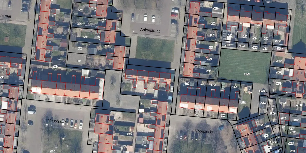 Het perceel waarop Ankerstraat 52 staat heeft een oppervlakte van 2945 m². Dit is een zeer groot perceel. De perceeloppervlakte wordt geregistreerd door het Kadaster. Gedetailleerde informatie over de maten van dit perceel kunt u vinden in het rapport Kadastrale kaart met maatvoering van Ankerstraat 52.