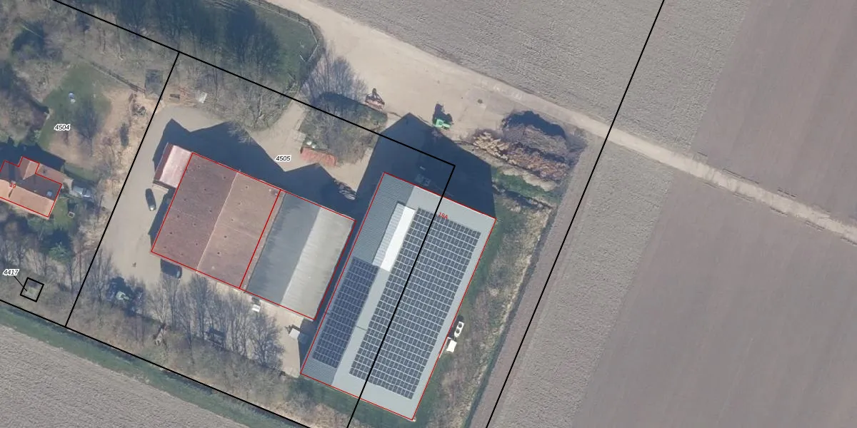 Het adres is gelegen op perceel 4505 in de sectie B en de kadastrale gemeente Dronten. De kadastrale aanduiding is aldus DTN01-B-4505. De gemiddelde perceelgrootte in Dronten is 1,8 ha. Dit perceel is kleiner: de perceeloppervlakte bedraagt 4852 m². De grootste perceeloppervlakte in de kadastrale gemeente is 25,03 km². De kleinste oppervlakte bedraagt 0 m². Dit is het enige adres dat aanwezig is op het perceel. De huidige grenzen van het perceel zijn digitaal in de Basisregistratie Kadaster (BRK) geregistreerd op 17-02-2021.