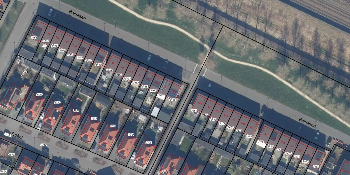 Het perceel waarop Baksteen 43-B staat heeft een oppervlakte van 206 m². Dit is een middelgroot perceel. De perceeloppervlakte wordt geregistreerd door het Kadaster. Gedetailleerde informatie over de maten van dit perceel kunt u vinden in het rapport Kadastrale kaart met maatvoering van Baksteen 43-B.