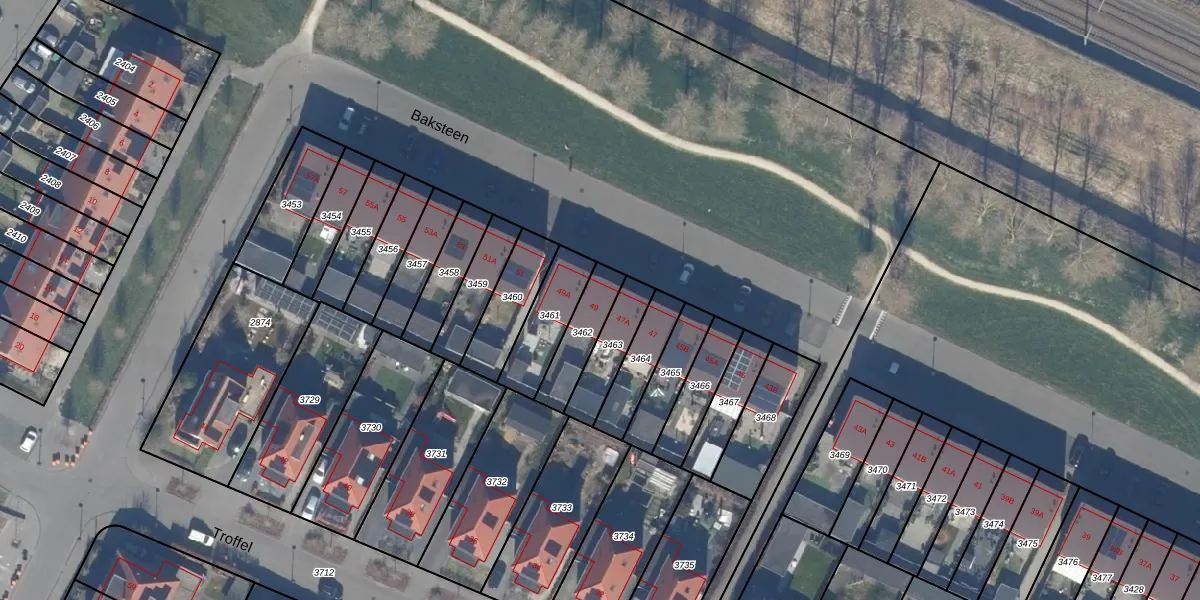 Het perceel waarop Baksteen 49 staat heeft een oppervlakte van 137 m². Dit is een middelgroot perceel. De perceeloppervlakte wordt geregistreerd door het Kadaster. Gedetailleerde informatie over de maten van dit perceel kunt u vinden in het rapport Kadastrale kaart met maatvoering van Baksteen 49.