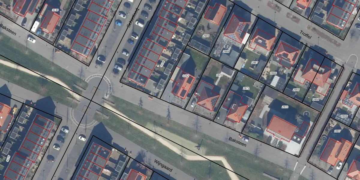 Het perceel waarop Baksteen 69 staat heeft een oppervlakte van 493 m². Dit is een groot perceel. De perceeloppervlakte wordt geregistreerd door het Kadaster. Gedetailleerde informatie over de maten van dit perceel kunt u vinden in het rapport Kadastrale kaart met maatvoering van Baksteen 69.