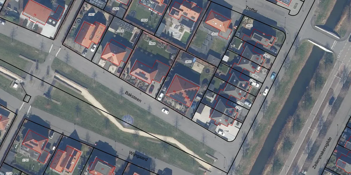 Het perceel waarop Baksteen 83 staat heeft een oppervlakte van 780 m². Dit is een groot perceel. De perceeloppervlakte wordt geregistreerd door het Kadaster. Gedetailleerde informatie over de maten van dit perceel kunt u vinden in het rapport Kadastrale kaart met maatvoering van Baksteen 83.