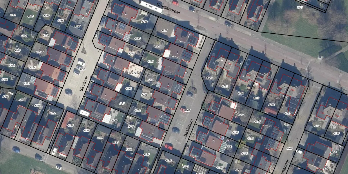 Het perceel waarop Basilicum 4 staat heeft een oppervlakte van 237 m². Dit is een middelgroot perceel. De perceeloppervlakte wordt geregistreerd door het Kadaster. Gedetailleerde informatie over de maten van dit perceel kunt u vinden in het rapport Kadastrale kaart met maatvoering van Basilicum 4.