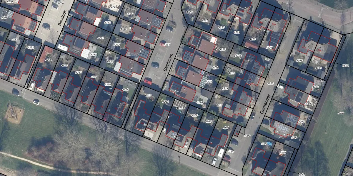 Het perceel waarop Basilicum 8 staat heeft een oppervlakte van 321 m². Dit is een groot perceel. De perceeloppervlakte wordt geregistreerd door het Kadaster. Gedetailleerde informatie over de maten van dit perceel kunt u vinden in het rapport Kadastrale kaart met maatvoering van Basilicum 8.