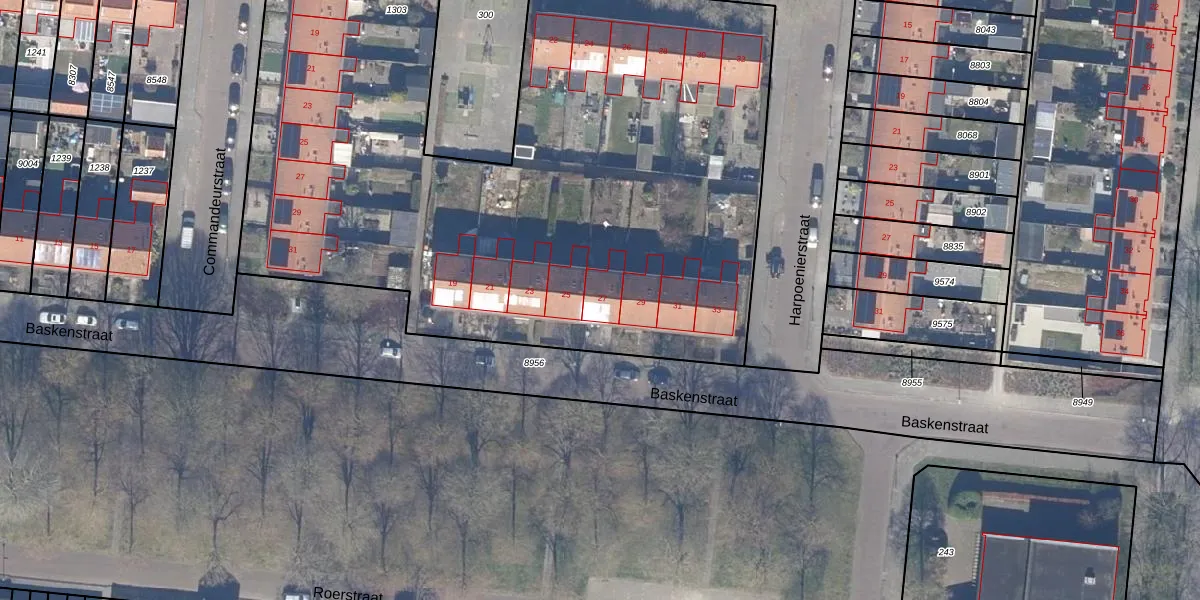 Het perceel waarop Baskenstraat 27 staat heeft een oppervlakte van 7867 m². Dit is een zeer groot perceel. De perceeloppervlakte wordt geregistreerd door het Kadaster. Gedetailleerde informatie over de maten van dit perceel kunt u vinden in het rapport Kadastrale kaart met maatvoering van Baskenstraat 27.