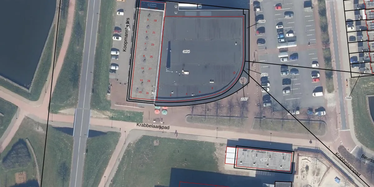 Het perceel waarop Beursstraat 4 staat heeft een oppervlakte van 2973 m². Dit is een zeer groot perceel. De perceeloppervlakte wordt geregistreerd door het Kadaster. Gedetailleerde informatie over de maten van dit perceel kunt u vinden in het rapport Kadastrale kaart met maatvoering van Beursstraat 4.