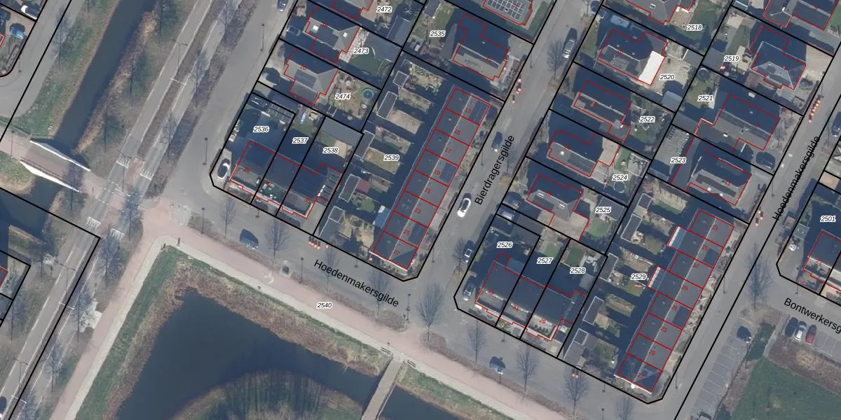 Het perceel waarop Bierdragersgilde 23 staat heeft een oppervlakte van 1322 m². Dit is een zeer groot perceel. De perceeloppervlakte wordt geregistreerd door het Kadaster. Gedetailleerde informatie over de maten van dit perceel kunt u vinden in het rapport Kadastrale kaart met maatvoering van Bierdragersgilde 23.