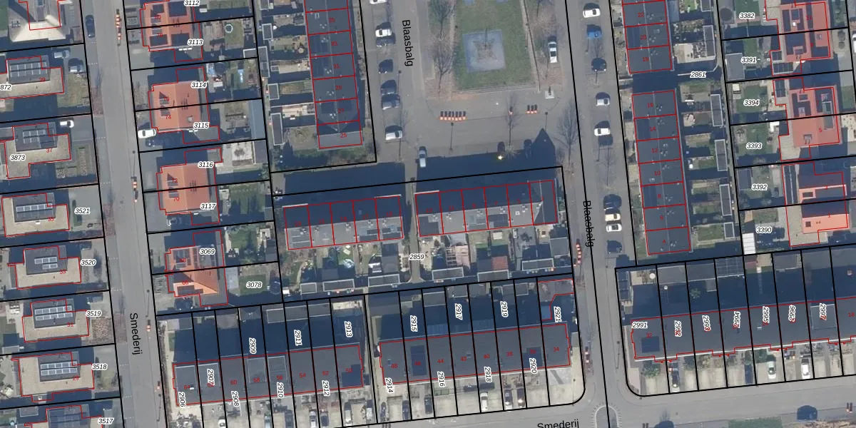 Het perceel waarop Blaasbalg 13 staat heeft een oppervlakte van 1705 m². Dit is een zeer groot perceel. De perceeloppervlakte wordt geregistreerd door het Kadaster. Gedetailleerde informatie over de maten van dit perceel kunt u vinden in het rapport Kadastrale kaart met maatvoering van Blaasbalg 13.