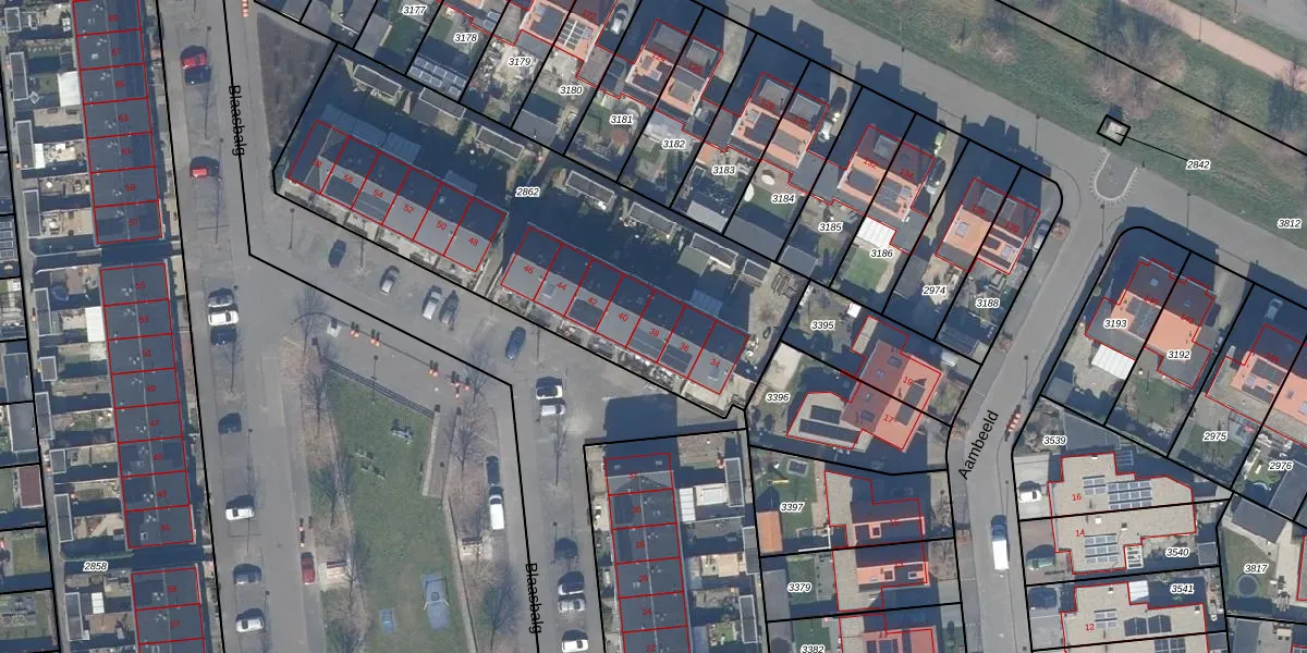 Het perceel waarop Blaasbalg 38 staat heeft een oppervlakte van 2010 m². Dit is een zeer groot perceel. De perceeloppervlakte wordt geregistreerd door het Kadaster. Gedetailleerde informatie over de maten van dit perceel kunt u vinden in het rapport Kadastrale kaart met maatvoering van Blaasbalg 38.
