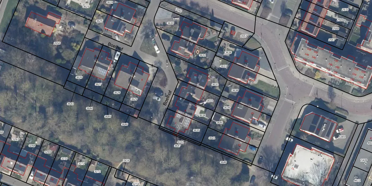 Het perceel waarop Boelhof 9 staat heeft een oppervlakte van 201 m². Dit is een middelgroot perceel. De perceeloppervlakte wordt geregistreerd door het Kadaster. Gedetailleerde informatie over de maten van dit perceel kunt u vinden in het rapport Kadastrale kaart met maatvoering van Boelhof 9.