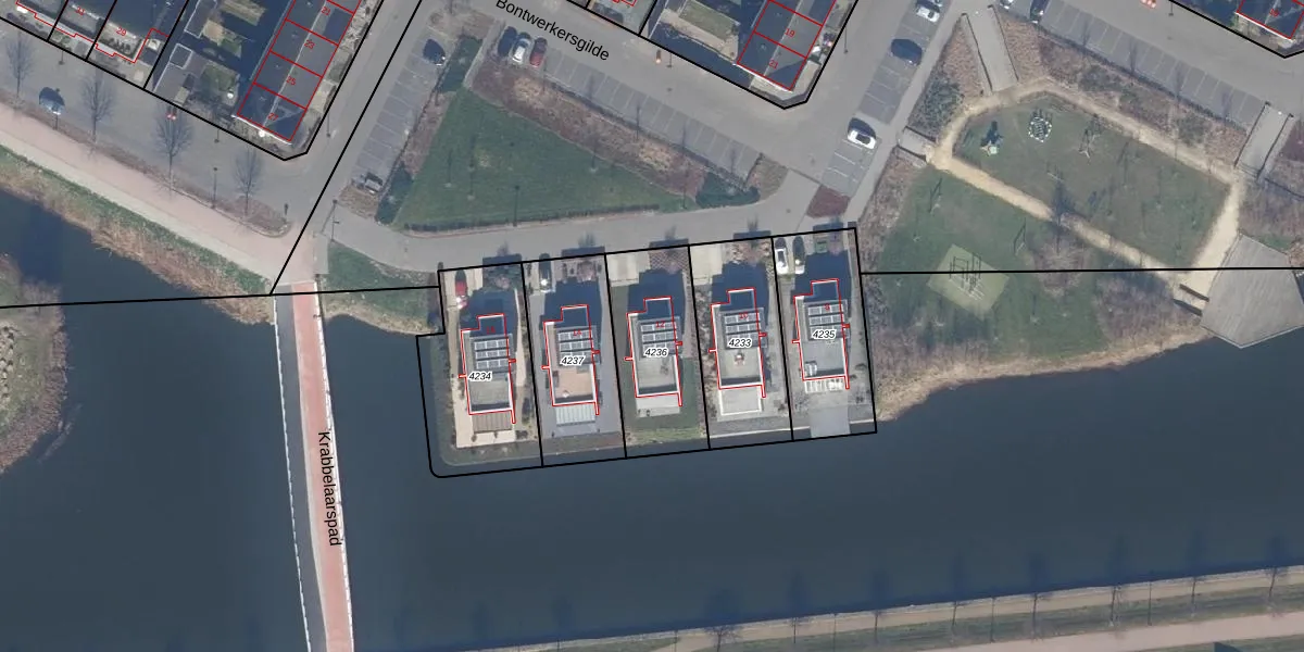 Het perceel waarop Bontwerkersgilde 12 staat heeft een oppervlakte van 405 m². Dit is een groot perceel. De perceeloppervlakte wordt geregistreerd door het Kadaster. Gedetailleerde informatie over de maten van dit perceel kunt u vinden in het rapport Kadastrale kaart met maatvoering van Bontwerkersgilde 12.