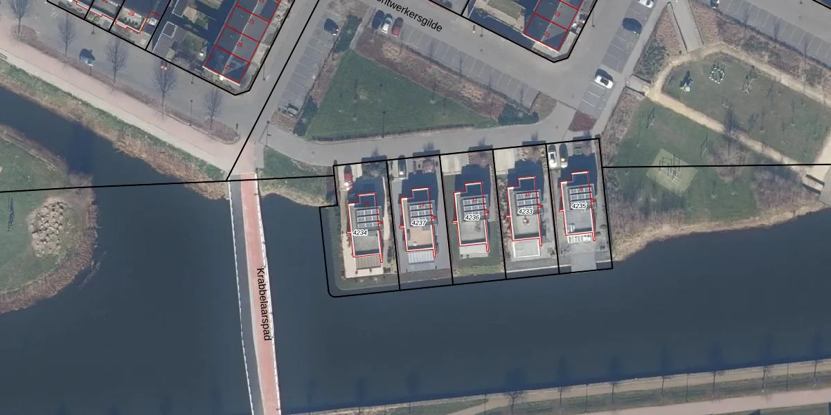Het perceel waarop Bontwerkersgilde 14 staat heeft een oppervlakte van 405 m². Dit is een groot perceel. De perceeloppervlakte wordt geregistreerd door het Kadaster. Gedetailleerde informatie over de maten van dit perceel kunt u vinden in het rapport Kadastrale kaart met maatvoering van Bontwerkersgilde 14.