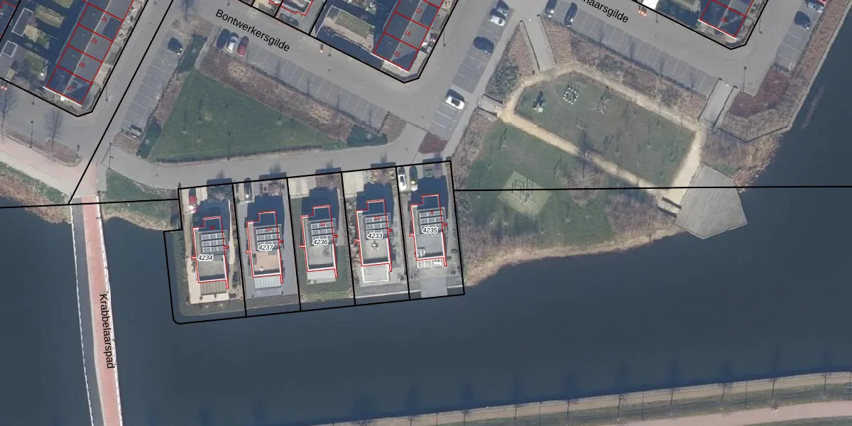 Het perceel waarop Bontwerkersgilde 8 staat heeft een oppervlakte van 405 m². Dit is een groot perceel. De perceeloppervlakte wordt geregistreerd door het Kadaster. Gedetailleerde informatie over de maten van dit perceel kunt u vinden in het rapport Kadastrale kaart met maatvoering van Bontwerkersgilde 8.