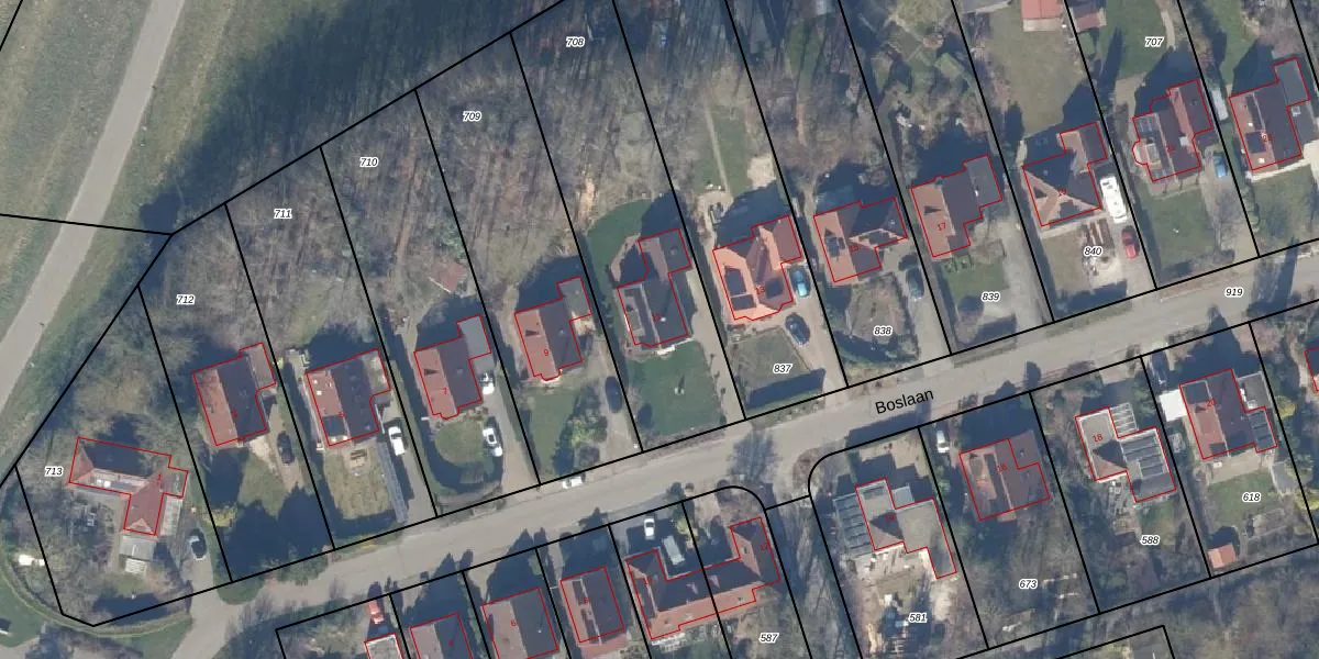 Het perceel waarop Boslaan 11 staat heeft een oppervlakte van 1127 m². Dit is een zeer groot perceel. De perceeloppervlakte wordt geregistreerd door het Kadaster. Gedetailleerde informatie over de maten van dit perceel kunt u vinden in het rapport Kadastrale kaart met maatvoering van Boslaan 11.