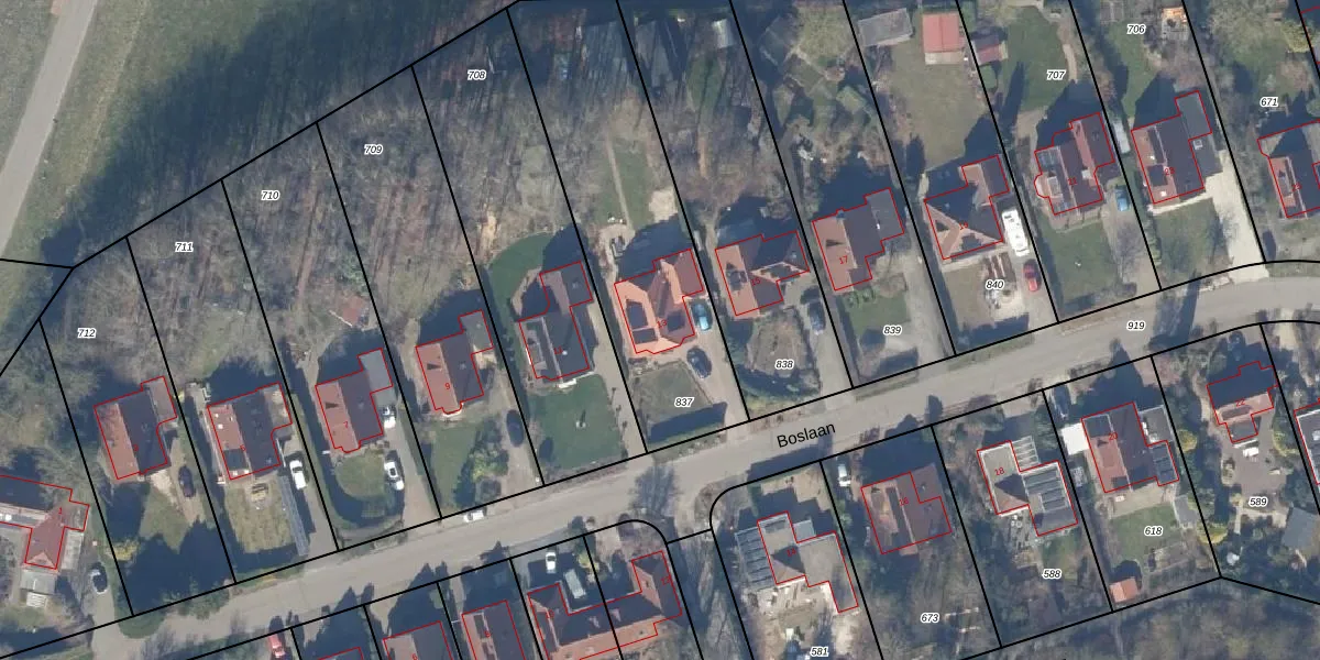 Gebruik de zoekbalk of klik op een perceel voor informatie over de adressen binnen dit perceel.