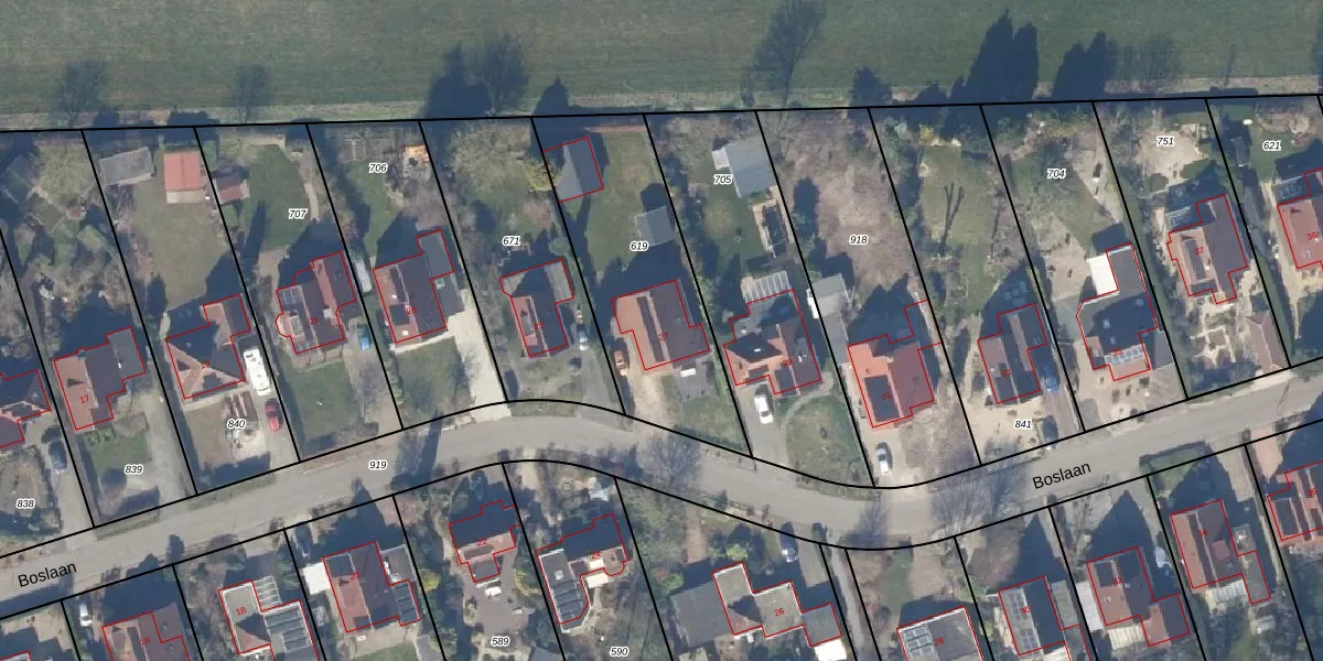 Het perceel waarop Boslaan 27 staat heeft een oppervlakte van 835 m². Dit is een groot perceel. De perceeloppervlakte wordt geregistreerd door het Kadaster. Gedetailleerde informatie over de maten van dit perceel kunt u vinden in het rapport Kadastrale kaart met maatvoering van Boslaan 27.