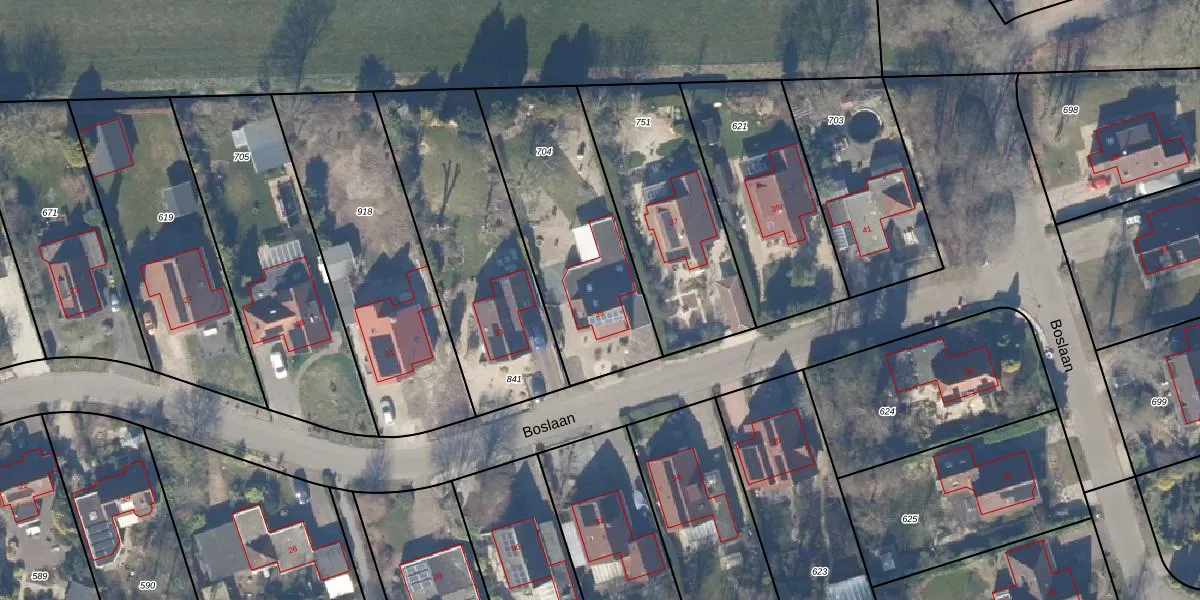 Het perceel waarop Boslaan 35 staat heeft een oppervlakte van 810 m². Dit is een groot perceel. De perceeloppervlakte wordt geregistreerd door het Kadaster. Gedetailleerde informatie over de maten van dit perceel kunt u vinden in het rapport Kadastrale kaart met maatvoering van Boslaan 35.