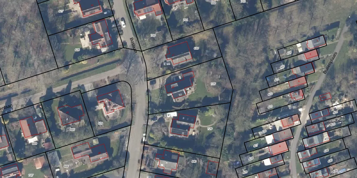 Het perceel waarop Boslaan 49 staat heeft een oppervlakte van 1049 m². Dit is een zeer groot perceel. De perceeloppervlakte wordt geregistreerd door het Kadaster. Gedetailleerde informatie over de maten van dit perceel kunt u vinden in het rapport Kadastrale kaart met maatvoering van Boslaan 49.