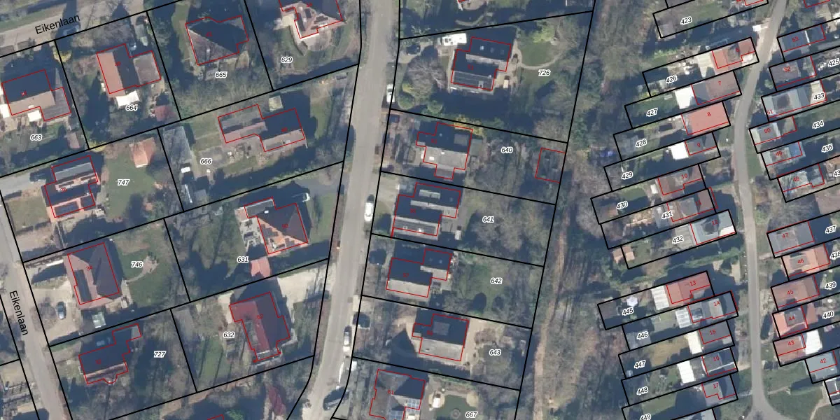 Het perceel waarop Boslaan 55 staat heeft een oppervlakte van 635 m². Dit is een groot perceel. De perceeloppervlakte wordt geregistreerd door het Kadaster. Gedetailleerde informatie over de maten van dit perceel kunt u vinden in het rapport Kadastrale kaart met maatvoering van Boslaan 55.