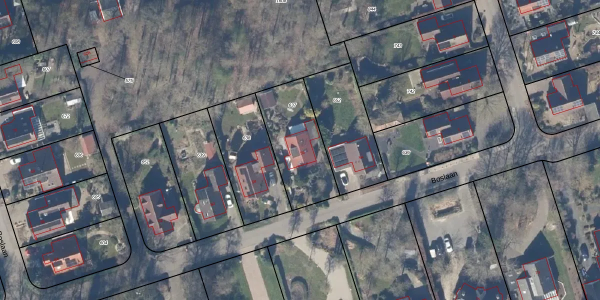 Het perceel waarop Boslaan 56 staat heeft een oppervlakte van 690 m². Dit is een groot perceel. De perceeloppervlakte wordt geregistreerd door het Kadaster. Gedetailleerde informatie over de maten van dit perceel kunt u vinden in het rapport Kadastrale kaart met maatvoering van Boslaan 56.