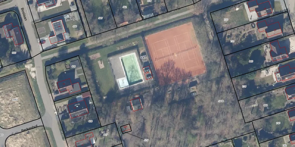 Het perceel waarop Boslaan 62-B staat heeft een oppervlakte van 2,4 ha. Dit is een zeer groot perceel. De perceeloppervlakte wordt geregistreerd door het Kadaster. Gedetailleerde informatie over de maten van dit perceel kunt u vinden in het rapport Kadastrale kaart met maatvoering van Boslaan 62-B.