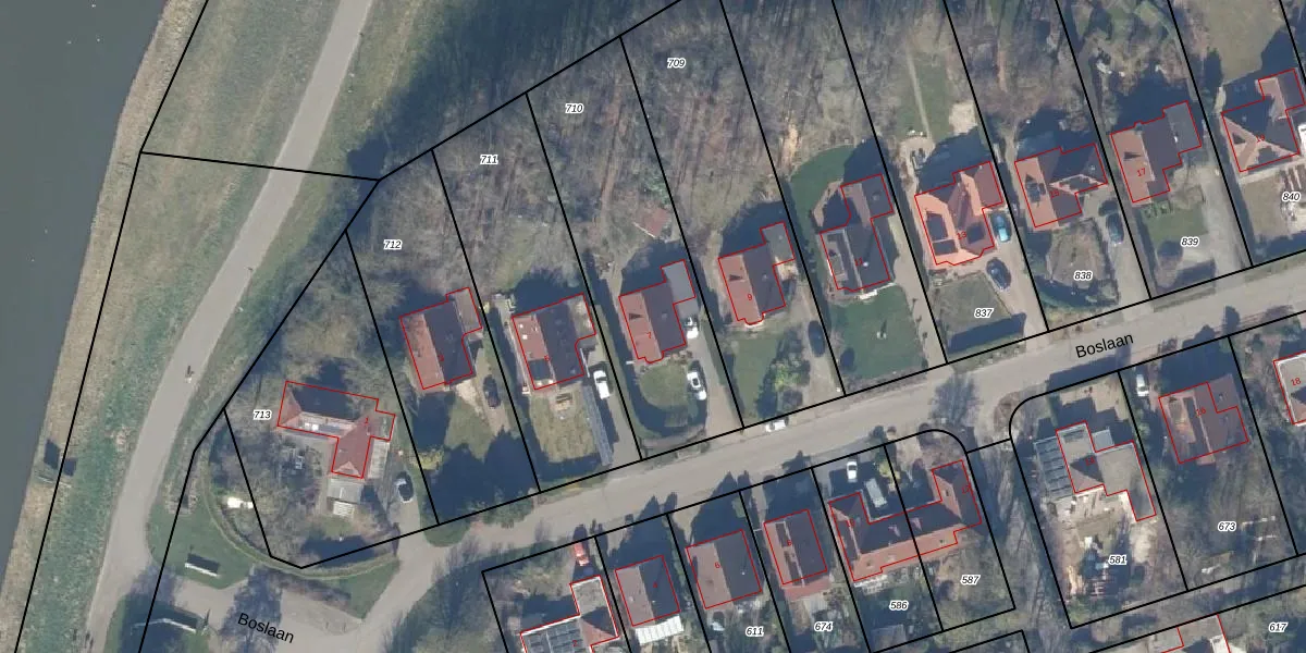 Het perceel waarop Boslaan 7 staat heeft een oppervlakte van 1000 m². Dit is een zeer groot perceel. De perceeloppervlakte wordt geregistreerd door het Kadaster. Gedetailleerde informatie over de maten van dit perceel kunt u vinden in het rapport Kadastrale kaart met maatvoering van Boslaan 7.