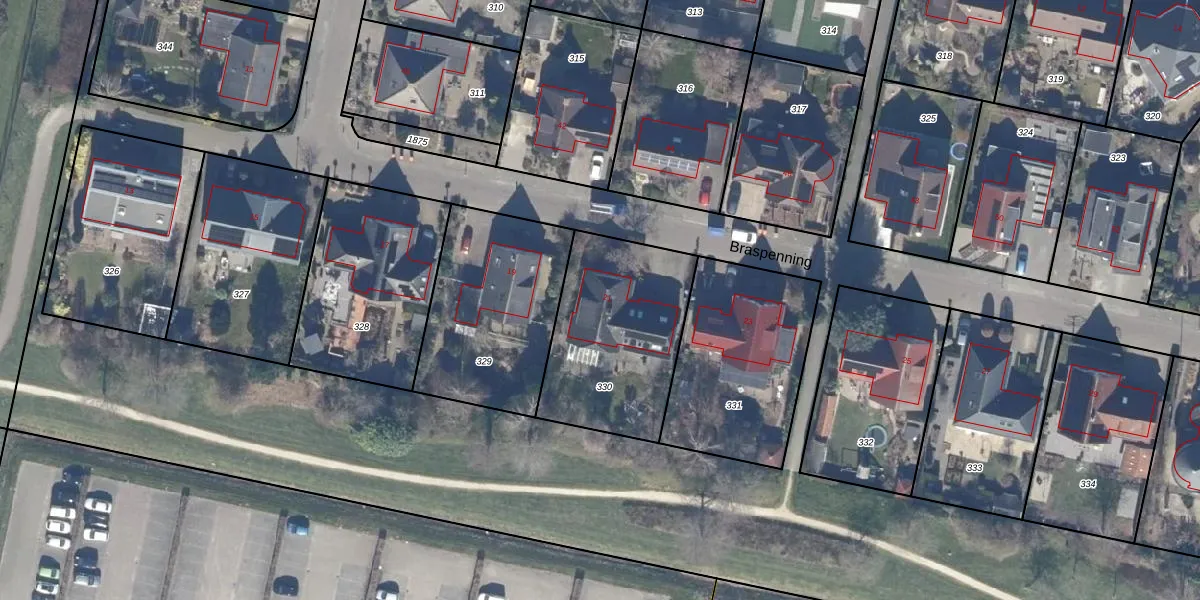 Het perceel waarop Braspenning 21 staat heeft een oppervlakte van 671 m². Dit is een groot perceel. De perceeloppervlakte wordt geregistreerd door het Kadaster. Gedetailleerde informatie over de maten van dit perceel kunt u vinden in het rapport Kadastrale kaart met maatvoering van Braspenning 21.