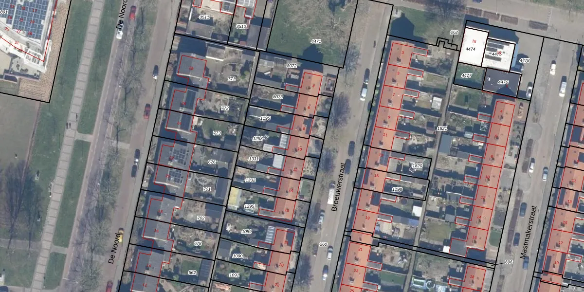Het perceel waarop Breeuwerstraat 10 staat heeft een oppervlakte van 202 m². Dit is een middelgroot perceel. De perceeloppervlakte wordt geregistreerd door het Kadaster. Gedetailleerde informatie over de maten van dit perceel kunt u vinden in het rapport Kadastrale kaart met maatvoering van Breeuwerstraat 10.