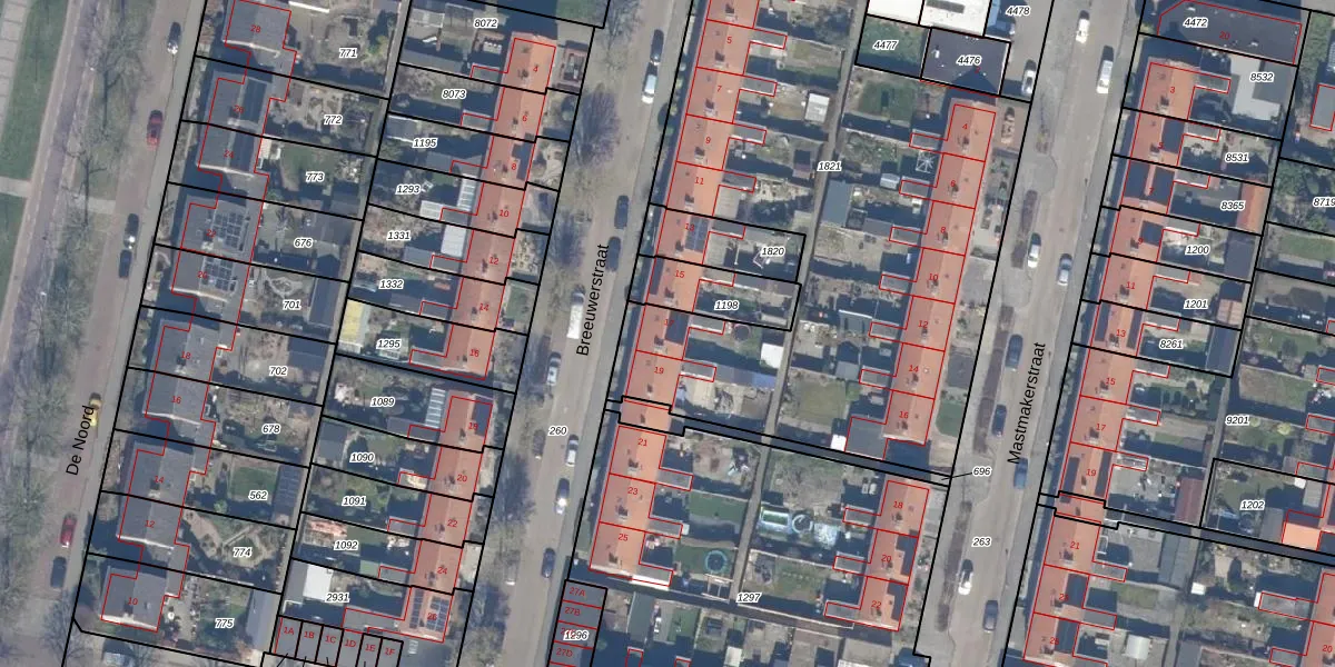 Het perceel waarop Breeuwerstraat 17 staat heeft een oppervlakte van 2963 m². Dit is een zeer groot perceel. De perceeloppervlakte wordt geregistreerd door het Kadaster. Gedetailleerde informatie over de maten van dit perceel kunt u vinden in het rapport Kadastrale kaart met maatvoering van Breeuwerstraat 17.