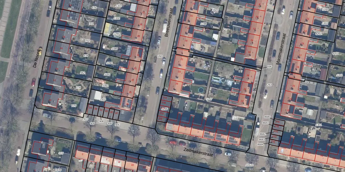 Het perceel waarop Breeuwerstraat 25 staat heeft een oppervlakte van 2514 m². Dit is een zeer groot perceel. De perceeloppervlakte wordt geregistreerd door het Kadaster. Gedetailleerde informatie over de maten van dit perceel kunt u vinden in het rapport Kadastrale kaart met maatvoering van Breeuwerstraat 25.