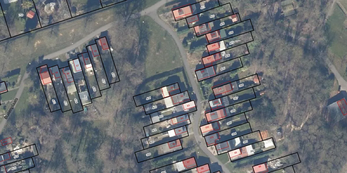 Gebruik de zoekbalk of klik op een perceel voor informatie over de adressen binnen dit perceel.