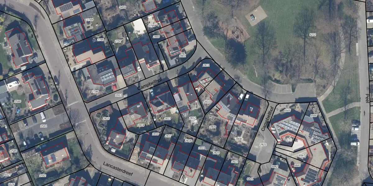 Het perceel waarop Campbellhof 30 staat heeft een oppervlakte van 373 m². Dit is een groot perceel. De perceeloppervlakte wordt geregistreerd door het Kadaster. Gedetailleerde informatie over de maten van dit perceel kunt u vinden in het rapport Kadastrale kaart met maatvoering van Campbellhof 30.