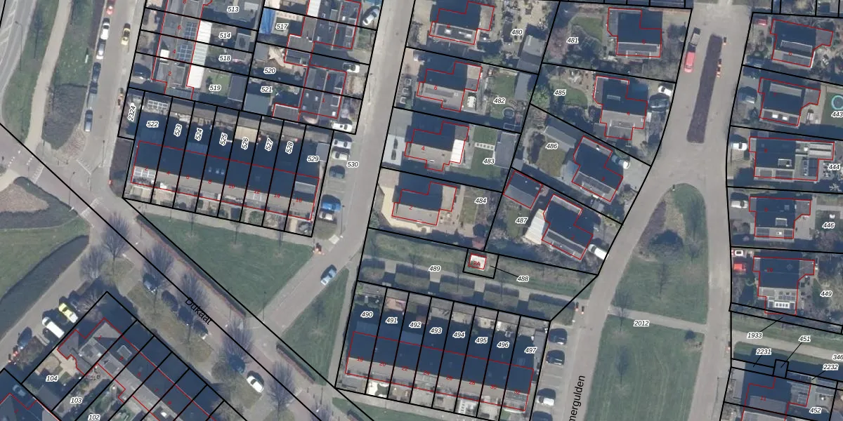 Carolusgulden 2 is gelegen op kadastraal perceel DTN01K484. Deze kadastrale aanduiding is uniek en wordt gebruikt door het Kadaster om eigendomsrechten en andere zakelijke rechten vast te leggen. Het perceel maakt onderdeel uit van de kadastrale gemeente Dronten.