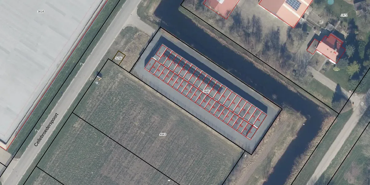 Het perceel waarop Cellebroederspoort 5-H staat heeft een oppervlakte van 2376 m². Dit is een zeer groot perceel. De perceeloppervlakte wordt geregistreerd door het Kadaster. Gedetailleerde informatie over de maten van dit perceel kunt u vinden in het rapport Kadastrale kaart met maatvoering van Cellebroederspoort 5-H.