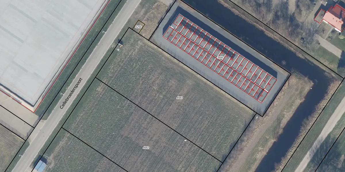 Het perceel waarop Cellebroederspoort 7-A staat heeft een oppervlakte van 3126 m². Dit is een zeer groot perceel. De perceeloppervlakte wordt geregistreerd door het Kadaster. Gedetailleerde informatie over de maten van dit perceel kunt u vinden in het rapport Kadastrale kaart met maatvoering van Cellebroederspoort 7-A.