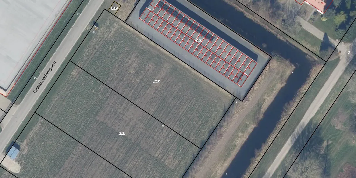 Het perceel waarop Cellebroederspoort 7-B staat heeft een oppervlakte van 3126 m². Dit is een zeer groot perceel. De perceeloppervlakte wordt geregistreerd door het Kadaster. Gedetailleerde informatie over de maten van dit perceel kunt u vinden in het rapport Kadastrale kaart met maatvoering van Cellebroederspoort 7-B.