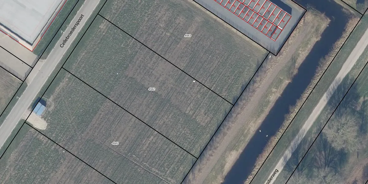 Het perceel waarop Cellebroederspoort 9-E staat heeft een oppervlakte van 3119 m². Dit is een zeer groot perceel. De perceeloppervlakte wordt geregistreerd door het Kadaster. Gedetailleerde informatie over de maten van dit perceel kunt u vinden in het rapport Kadastrale kaart met maatvoering van Cellebroederspoort 9-E.