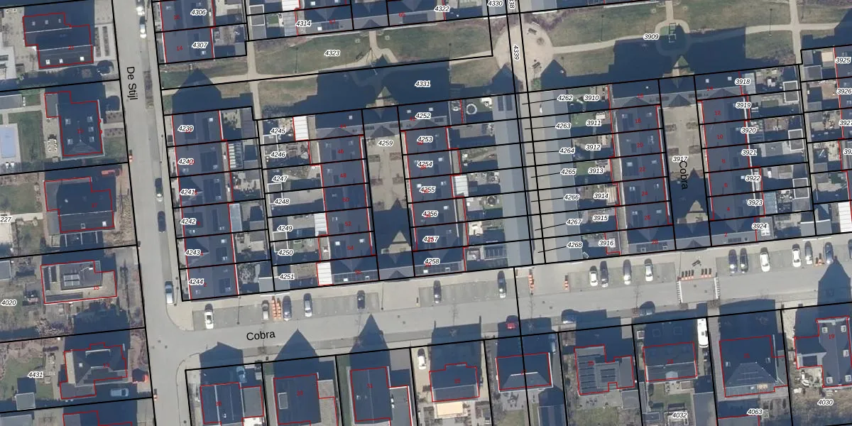 Het perceel waarop Cobra 34 staat heeft een oppervlakte van 159 m². Dit is een middelgroot perceel. De perceeloppervlakte wordt geregistreerd door het Kadaster. Gedetailleerde informatie over de maten van dit perceel kunt u vinden in het rapport Kadastrale kaart met maatvoering van Cobra 34.