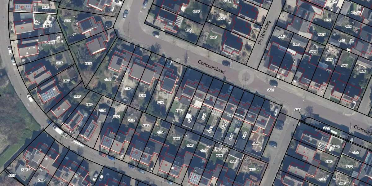 Het perceel waarop Concourslaan 22 staat heeft een oppervlakte van 288 m². Dit is een middelgroot perceel. De perceeloppervlakte wordt geregistreerd door het Kadaster. Gedetailleerde informatie over de maten van dit perceel kunt u vinden in het rapport Kadastrale kaart met maatvoering van Concourslaan 22.
