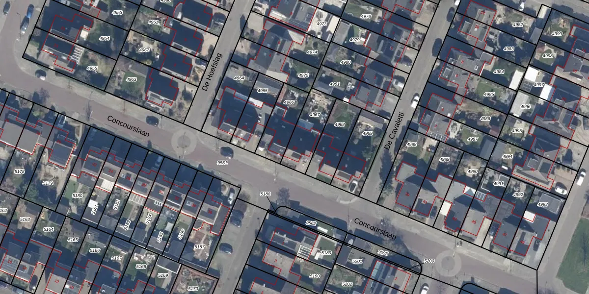 Het perceel waarop Concourslaan 33 staat heeft een oppervlakte van 259 m². Dit is een middelgroot perceel. De perceeloppervlakte wordt geregistreerd door het Kadaster. Gedetailleerde informatie over de maten van dit perceel kunt u vinden in het rapport Kadastrale kaart met maatvoering van Concourslaan 33.