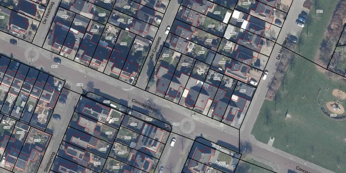Het perceel waarop Concourslaan 41 staat heeft een oppervlakte van 251 m². Dit is een middelgroot perceel. De perceeloppervlakte wordt geregistreerd door het Kadaster. Gedetailleerde informatie over de maten van dit perceel kunt u vinden in het rapport Kadastrale kaart met maatvoering van Concourslaan 41.