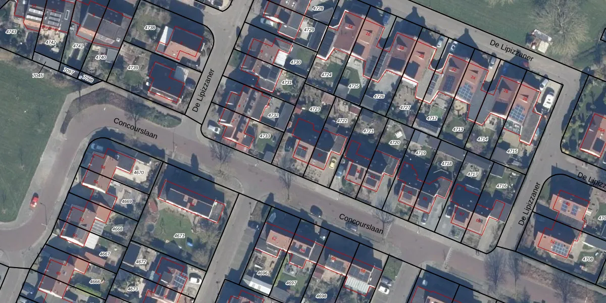 Het perceel waarop Concourslaan 55 staat heeft een oppervlakte van 326 m². Dit is een groot perceel. De perceeloppervlakte wordt geregistreerd door het Kadaster. Gedetailleerde informatie over de maten van dit perceel kunt u vinden in het rapport Kadastrale kaart met maatvoering van Concourslaan 55.