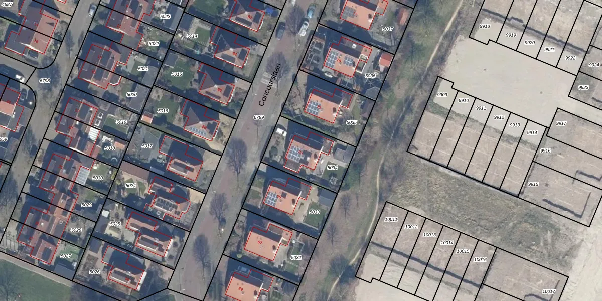 Het perceel waarop Concourslaan 83 staat heeft een oppervlakte van 457 m². Dit is een groot perceel. De perceeloppervlakte wordt geregistreerd door het Kadaster. Gedetailleerde informatie over de maten van dit perceel kunt u vinden in het rapport Kadastrale kaart met maatvoering van Concourslaan 83.