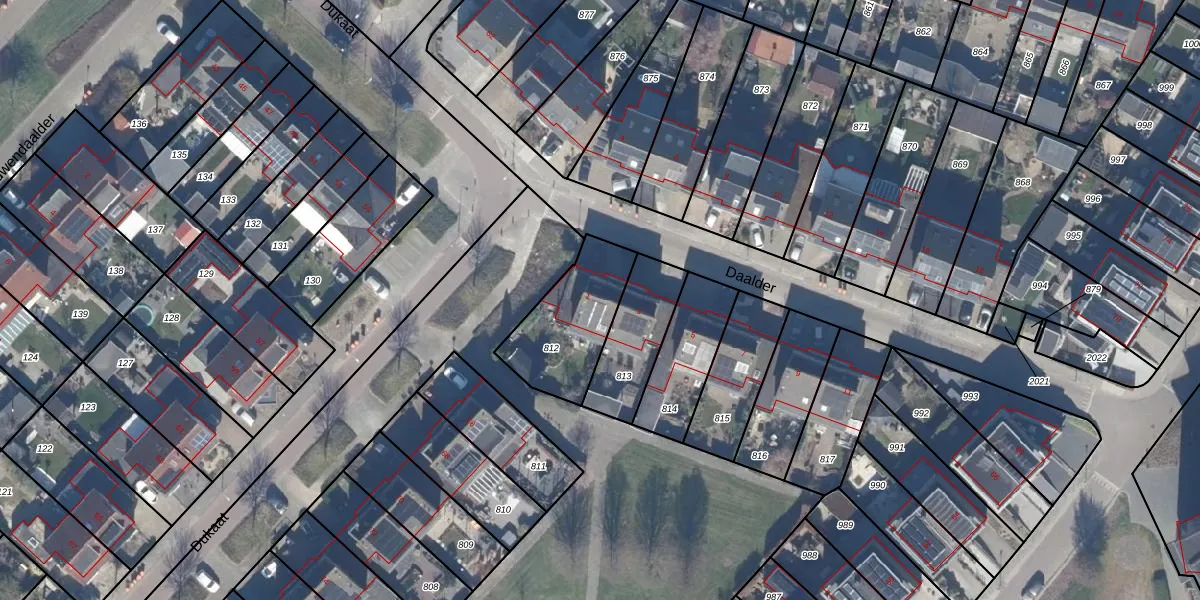 Het perceel waarop Daalder 1 staat heeft een oppervlakte van 332 m². Dit is een groot perceel. De perceeloppervlakte wordt geregistreerd door het Kadaster. Gedetailleerde informatie over de maten van dit perceel kunt u vinden in het rapport Kadastrale kaart met maatvoering van Daalder 1.