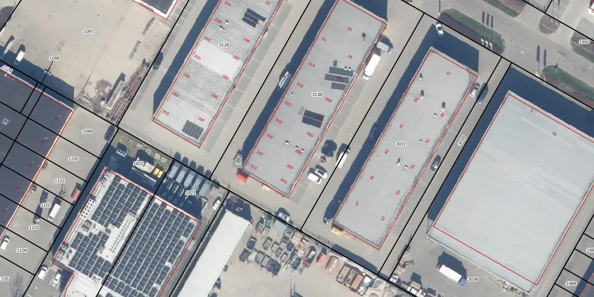 Het adres is gelegen op perceel 3138 in de sectie K en de kadastrale gemeente Dronten. De kadastrale aanduiding is aldus DTN01-K-3138. Het perceel is kleiner dan gemiddeld in Dronten. Het perceel is 2980 m² groot, terwijl het gemiddelde ligt op 1,8 ha. Het grootste perceel in de kadastrale gemeente is 25,03 km². Het kleinste perceel heeft een oppervlakte van 0 m². Op het perceel liggen in totaal 17 adressen. In de Basisregistratie Kadaster (BRK) werden de grenzen van het perceel geregistreerd op 02-02-2023.